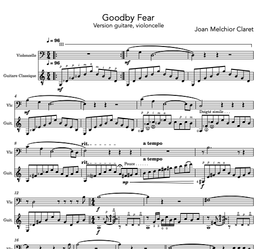 Goodby Fear 5,00€ quantité de Goodby Fear Ajouter au panier Catégorie : Duo pour guitare et violoncelle Description Description Goodby Fear_guitare : violoncelle